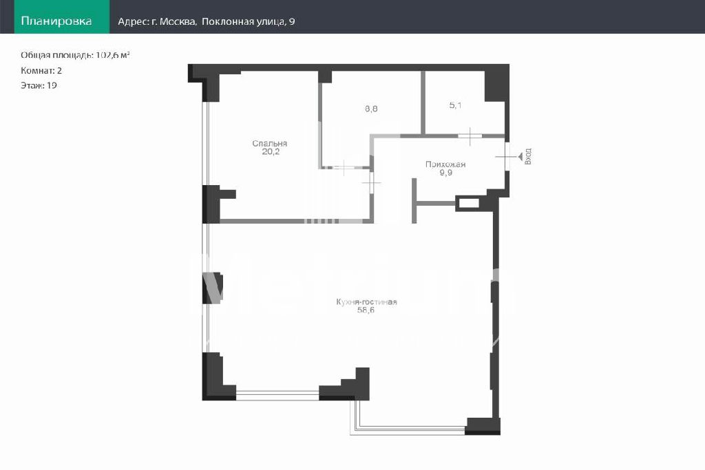 Общая: 102,6 м2