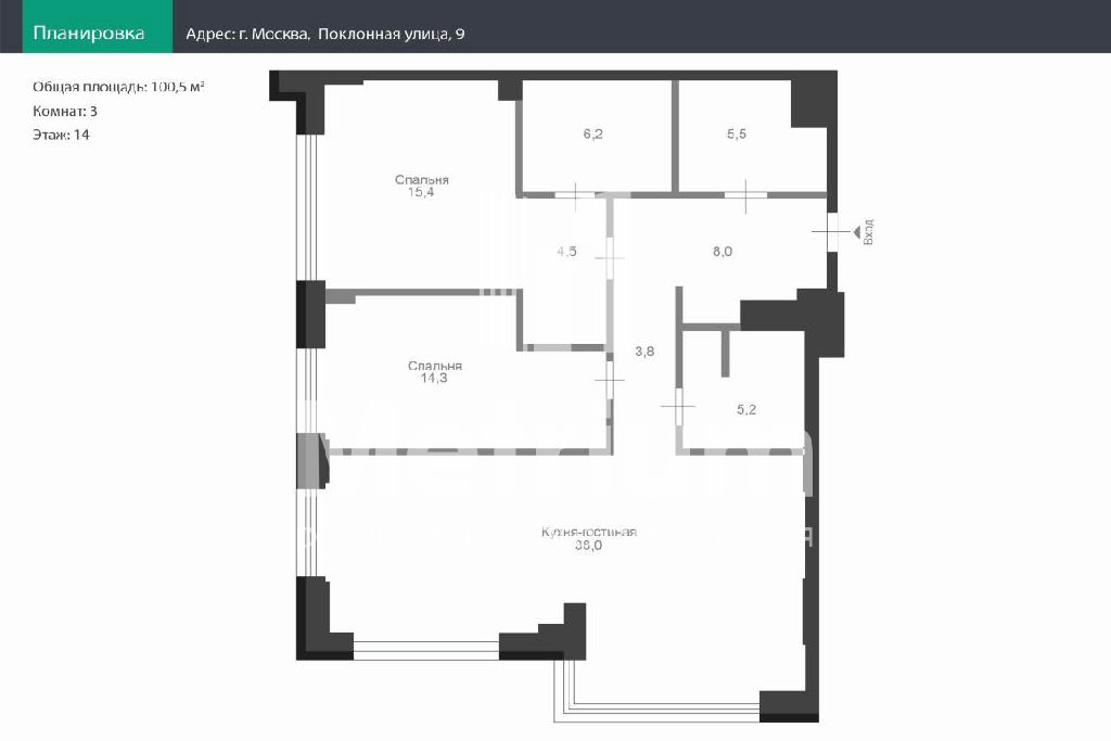 ID 24858 Предлагается прекрасный апартамент на 14 этаже, в комплексе премиум-класса "Поклонная, 9", площадью 100,9 кв. м.